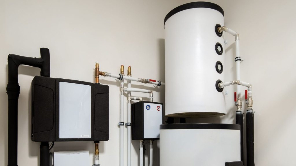 Serbatoi coibentati dove viene immagazzinata l’acqua calda per i termosifoni e il sistema di riscaldamento a pavimento.